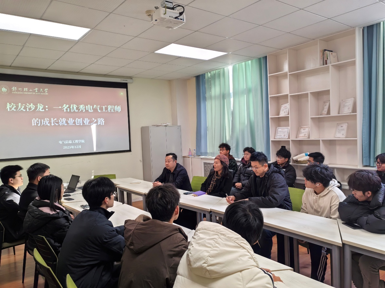 12月25日下午,电气信息工程学院在西二楼227室举办校友沙龙活动,邀请2003届电气工程及其自动化专业优秀校友、广东英瑞沃电气科技有限公司总经理赵艳女士返校,围绕“一名优秀电气工程师的成长就业创业之路”主题,与青年学生开展分享交流。活动由学院党委副书记刘振卫主持。
