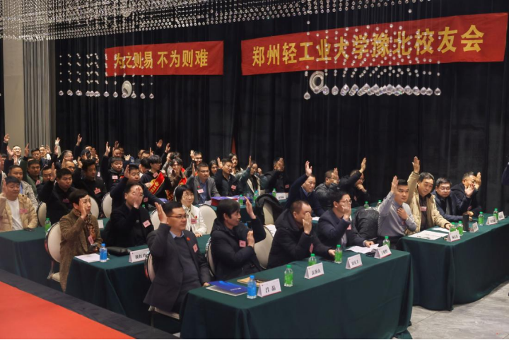 大会在雄壮的国歌声中拉开帷幕。杨东伟校友做豫北校友会筹备工作报告,校友工作办公室许海龙宣读《郑州轻工业大学关于同意成立豫北校友会的批复》及理事会建议名单。会议表决产生豫北校友会第一届理事会成员。