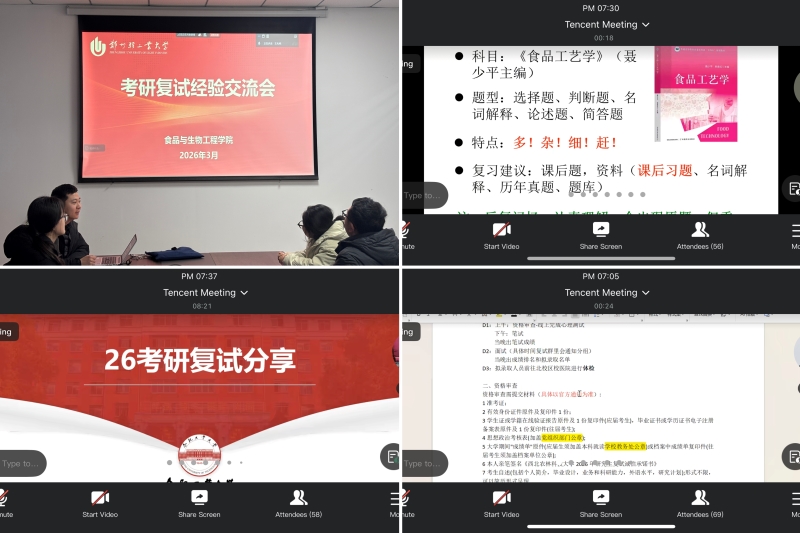 3月10日,食品与生物工程学院举办2026届考研复试经验交流会,百余名学生通过线上线下相结合的方式参与交流。会议由学院就业专职辅导员王兆博主持。