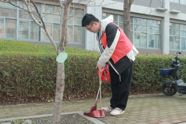 活动伊始,志愿者们身着志愿服装,在校园校友林指定区域有序集合。工作人员提前部署、明确分工,为活动的有序推进做好保障。活动过程中,志愿者们热情高涨、齐心协力,默契配合完成各项护绿任务,劳动间隙,志愿者们围坐交流,一同回顾学院发展历程,重温校友们反哺母校、捐赠树木的暖心举措,深切感悟到校友们对母校的深情寄语与美好期许,让学院优良文化在交流中薪火相传。活动尾声,志愿者们认真整理劳动工具,确保校友林区域整洁如初。通过此次实践劳动,志愿者们深刻体会到奉献的价值与意义,进一步坚定了发奋学习、以实际行动回报学校与校友的信念。